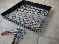 Nursery pony-pack tray, wire cutters, 1/4 inch hardware fabric, twisty tie wire.